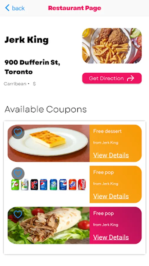 On the map page, people can find restaurants near their current location that offer coupons with directions and details of each restaurant.