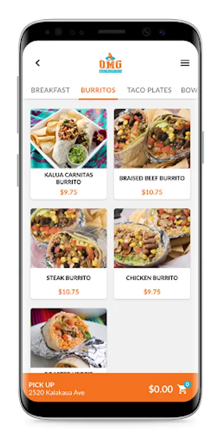 Skip the line and order ahead! This app will allow you to save your previous orders and payment info for fast, convenient ordering! OMG offers Hawaii's freshest grass-fed skirt steak burritos, bowls, tacos, salads, nachos, fries, quesadillas, and more! All-natural meats, salsas made from scratch daily! We also have many vegan, vegetarian, gluten-free, and paleo options!