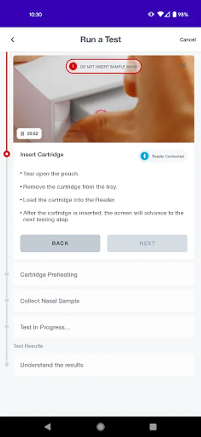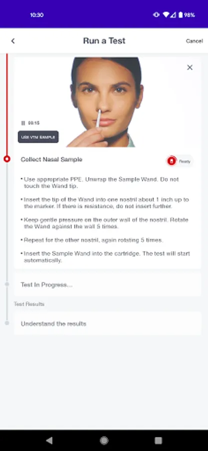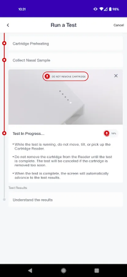 COVID-19 TEST including Cue Health Canada App, Cue Cartridge Reader, Cue Cartridge and Sample Wand. Initial version of the App is available in English only and intended for Professional use only.