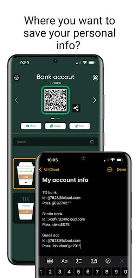 no more writing your secret info on your note pad with readable alphabet characters!!!