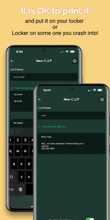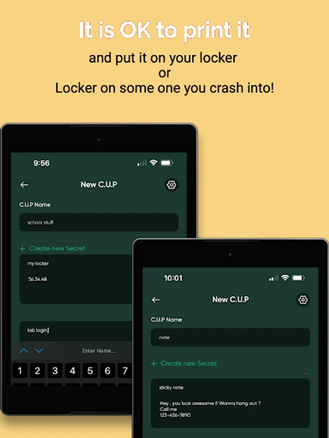 - You can make any type of C.U.P code , such as email, address, id, password or small writing.