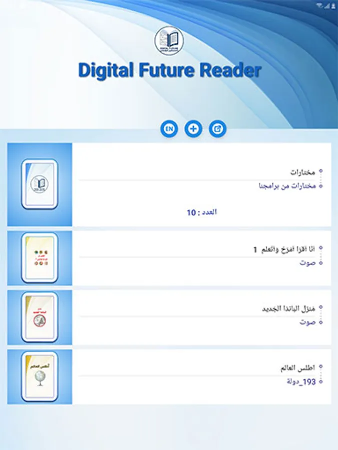 The program presents e-books issued by Digital Future Company, which includes sounds, movies, or interactive content.