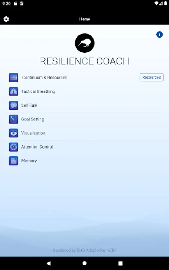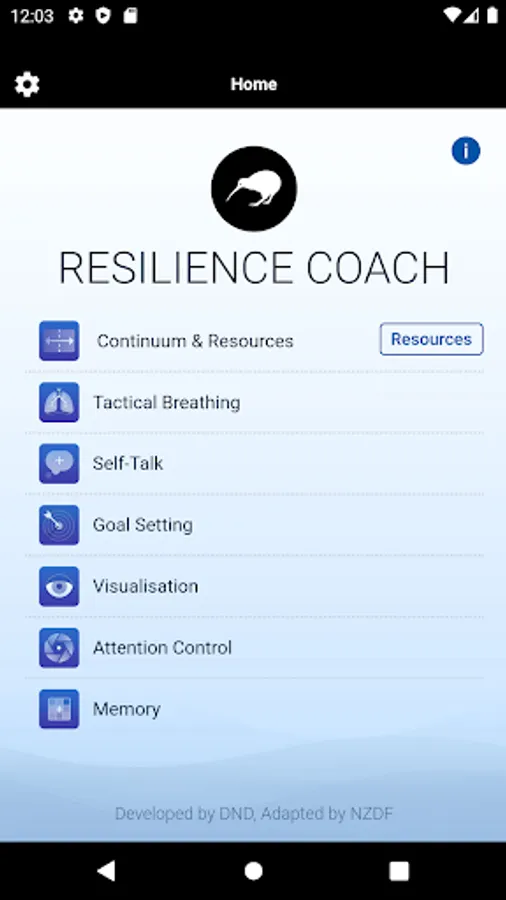 Recognising the repeated application and practice of mental skills in the training environment improves retention and effectiveness, the Resilience program has expanded training beyond the classroom environment. This includes providing personal training tools directly to NZDF members by developing a mobile application, improving the ability of NZDF course instructors to coach mental skills in regular training activities, and improving the ability of the NZDF leadership to mentor these skills through the career cycle.