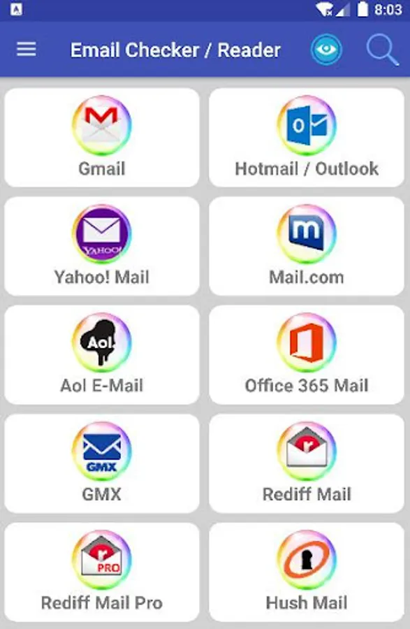 Email Checker / Reader is a popular Android Platform. User can check all Email sites which is popular in world. Don't need to install many app. Just Install these apps and enjoy all popular Email sites. This app saves your phone memory and ram.