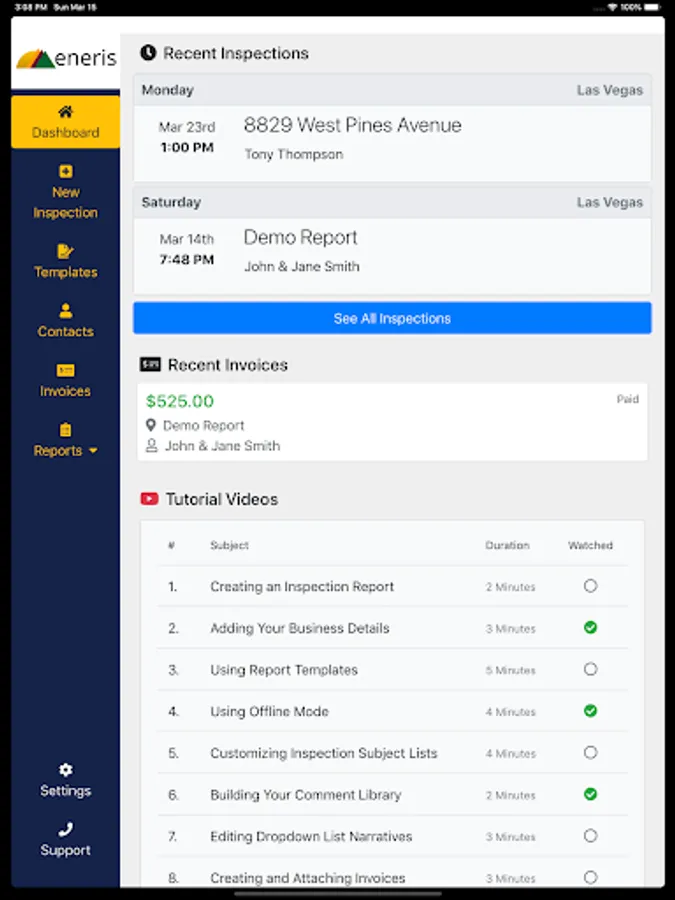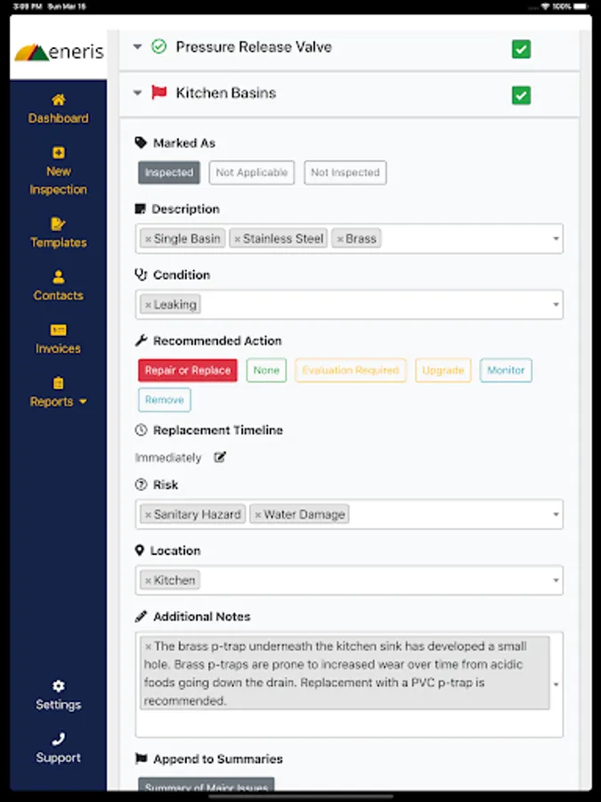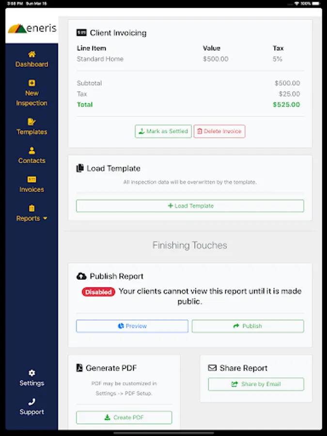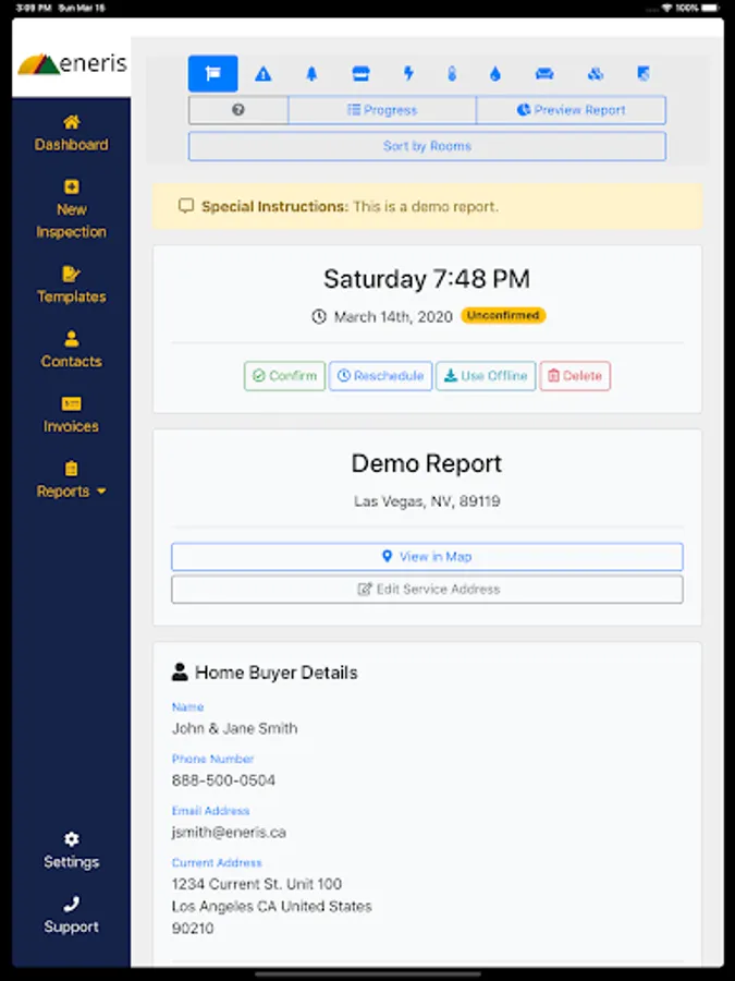* ON-SITE REPORTING - No need to add photos and videos to a report at home. Eneris lets you provide a complete home inspection report to your clients before you leave the property