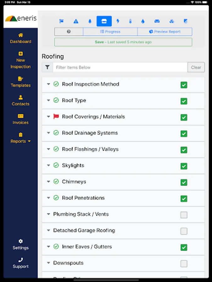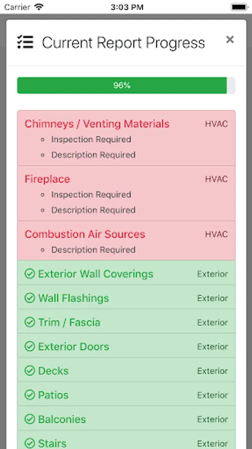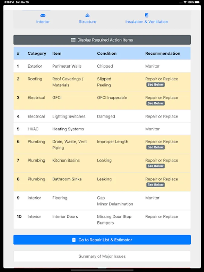 * PEACE OF MIND - Track your progress at any time during an inspection of the property to assure that you've checked all the required systems