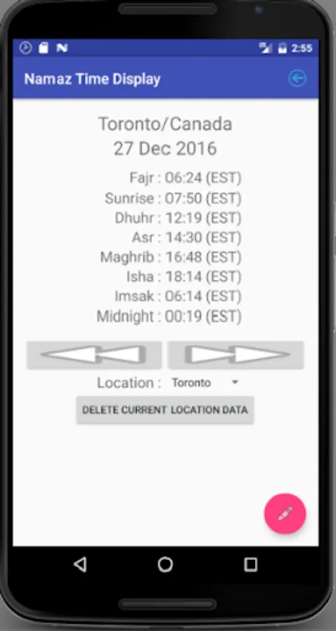 Unlike the windows tool, prayer time schedule is not calculated rather pooled from a web service created and maintained by AlAdhan.com. This schedule is based on City and Country. Though, it was possible to pool the prayer time data from that web service by latitude and longitude, but that was implemented as per my opinion most of the users might feel comfortable with the meaningful names of City and Country rather than few hard numbers.