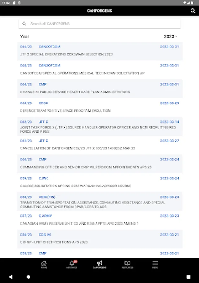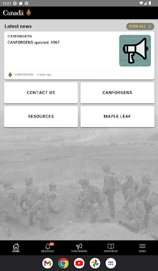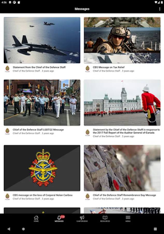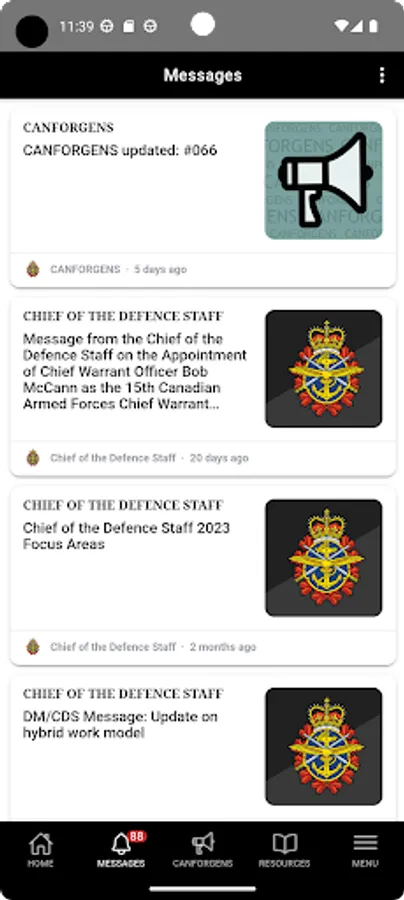 The Canadian Armed Forces app keeps military and civilian employees up to date with the latest news, CANFORGENS, orders and directives.