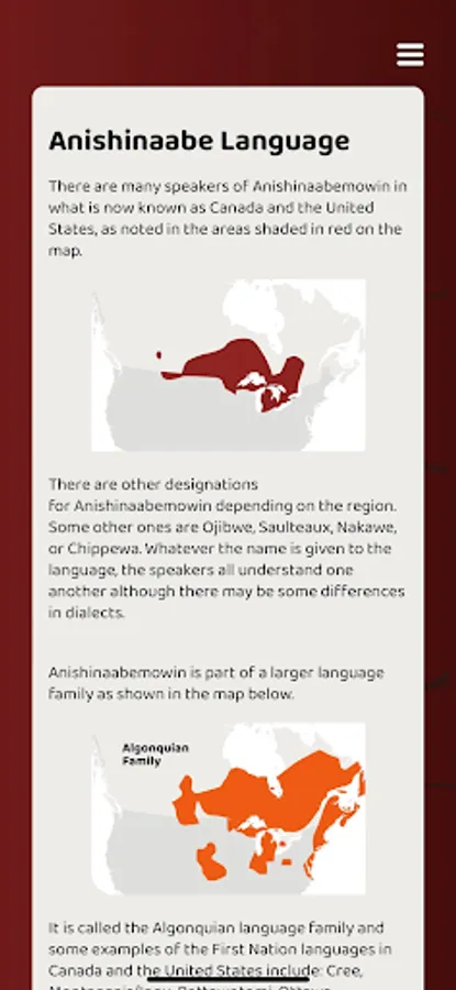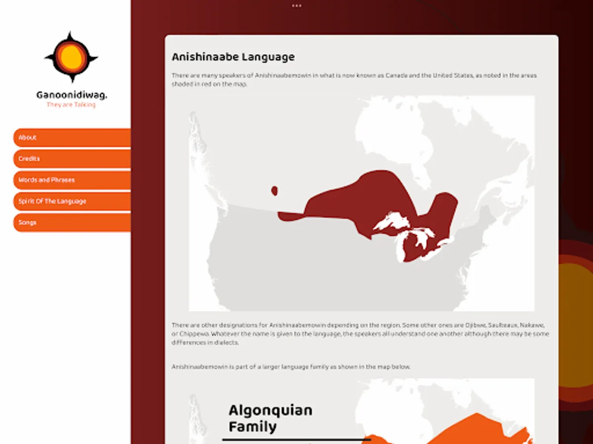 This app features words and phrases in the Ojibwe language that can be used in a variety of contexts: At School, In the Classroom, In the City, At Home and On the Land. The app also features songs and reflections from Elders about the deeper meaning of certain Anishinaabemowin words and phrases. This app can be used alongside the resource Giga-ganoonidimin Miinawaa! We will talk together again! Anishinaabemowin Dictionary for Students and Families.