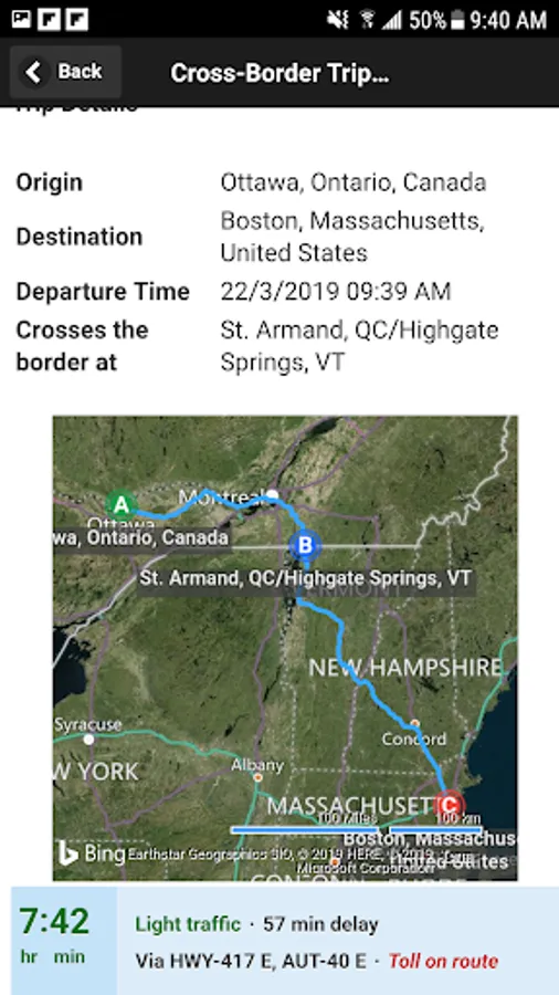 Having land border wait times at your fingertips helps you make an informed decision about where and when to cross the border. The CanBorder app provides estimated wait times at select ports of entry in Canada and the United States. Short on time? Use the trip planner function to generate an estimated best day, time and port of entry at which to cross the border, along with turn by turn directions to get you there. The CanBorder app is a free service provided by the Canada Border Services Agency.