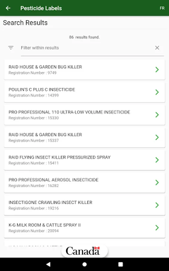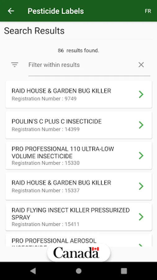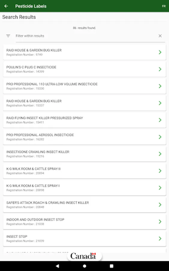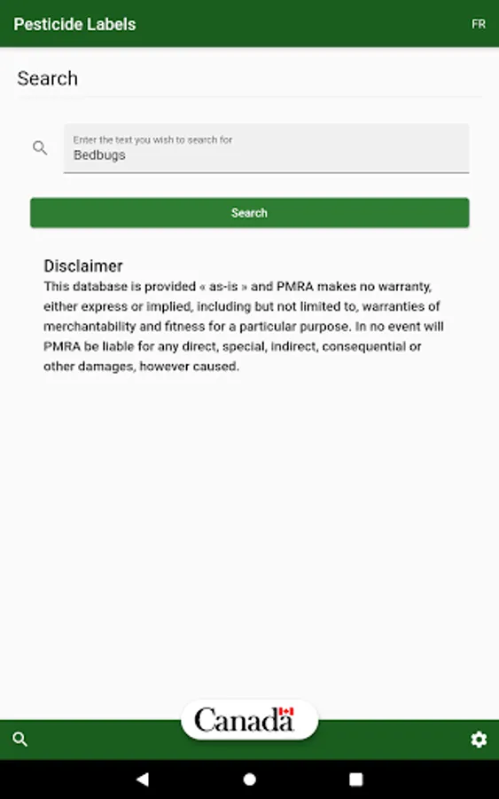 This app allows users to search for labels registered for use in Canada by Health Canada’s Pest Management Regulatory Agency (PMRA). Users can search by: