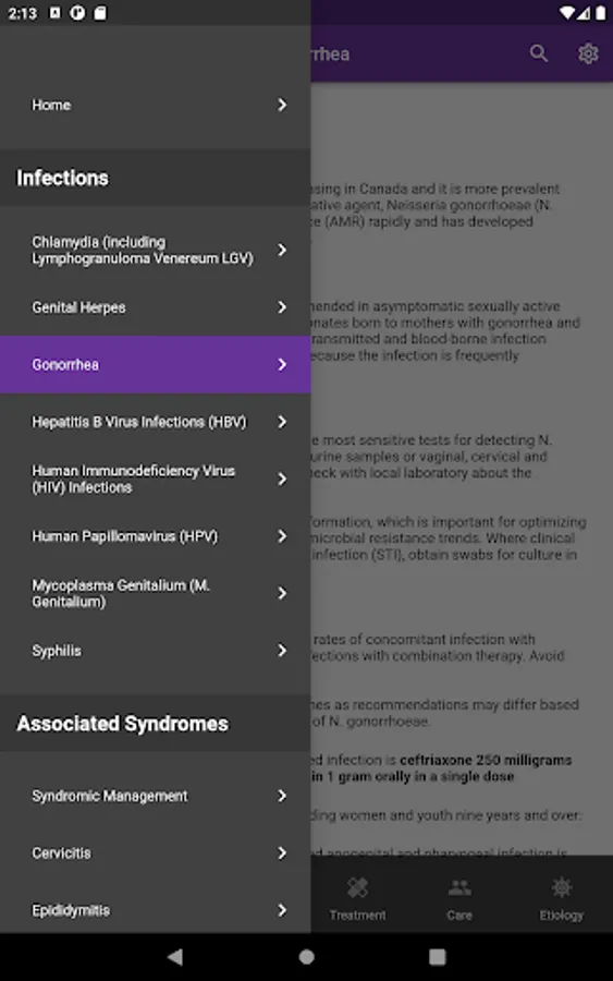 This application provides Canadian health professionals with up-to-date recommendations for the screening, diagnosis, management, and treatment of STIs, including recommendations for antibiotic-resistant gonorrhea, in a convenient, concise, and easy to use format.