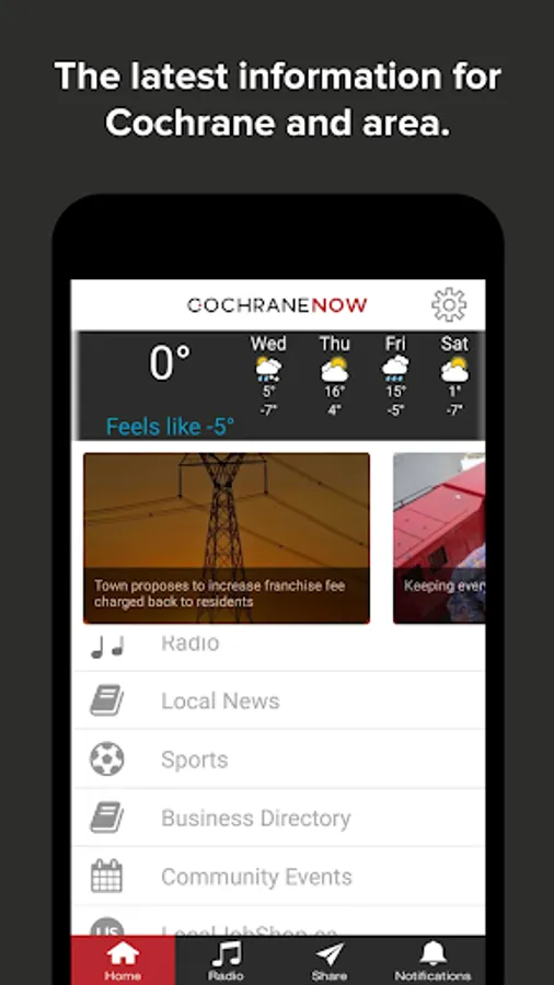 CochraneNow keeps you informed all day, every day, powered by relevant, local information from CochraneNow.com. Listen to your favourite radio station, look up a local businesses, check the weather, and find out what's going on in town, all in a few taps. And get customizable notifications sent to your phone.