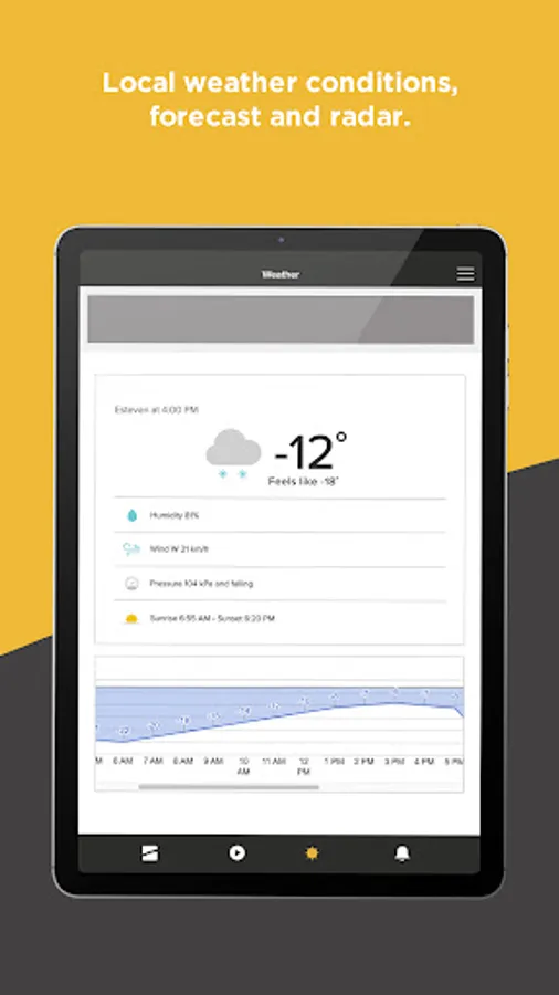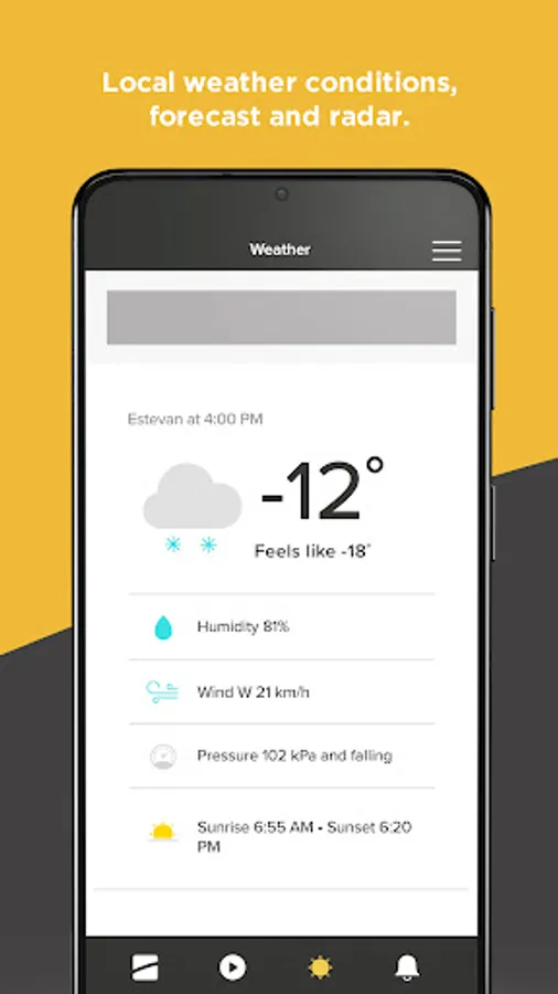 - Live local weather conditions, including hourly and 7-day forecasts and radar maps from Environment Canada