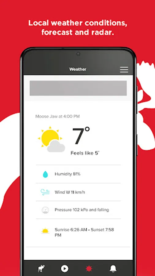 - Live local weather conditions, including hourly and 7-day forecasts and radar maps from Environment Canada