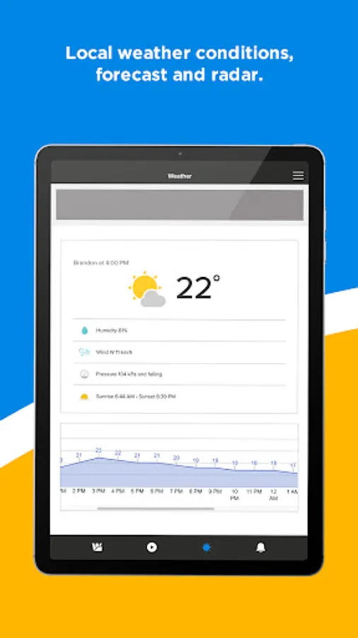 - Live local weather conditions, including hourly and 7-day forecasts and radar maps from Environment Canada