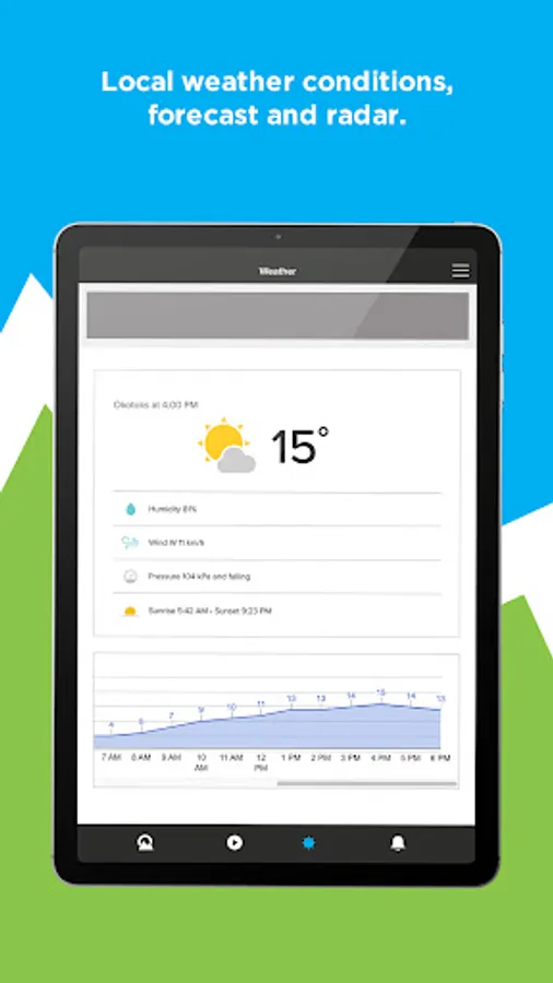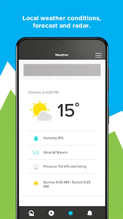 - Live local weather conditions, including hourly and 7-day forecasts and radar maps from Environment Canada