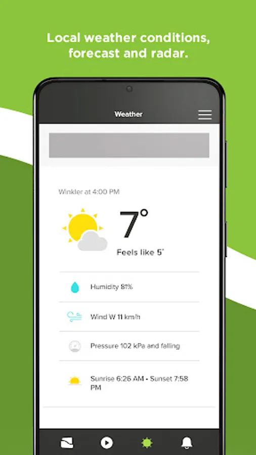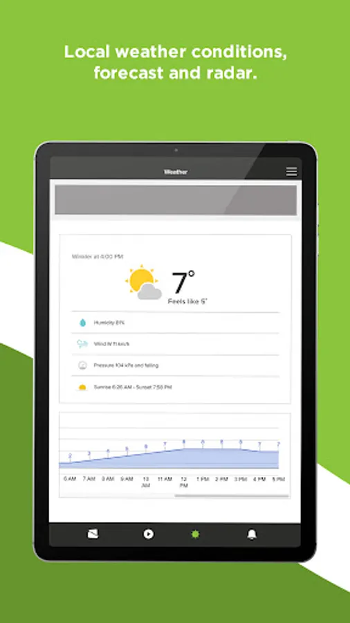 - Live local weather conditions, including hourly and 7-day forecasts and radar maps from Environment Canada