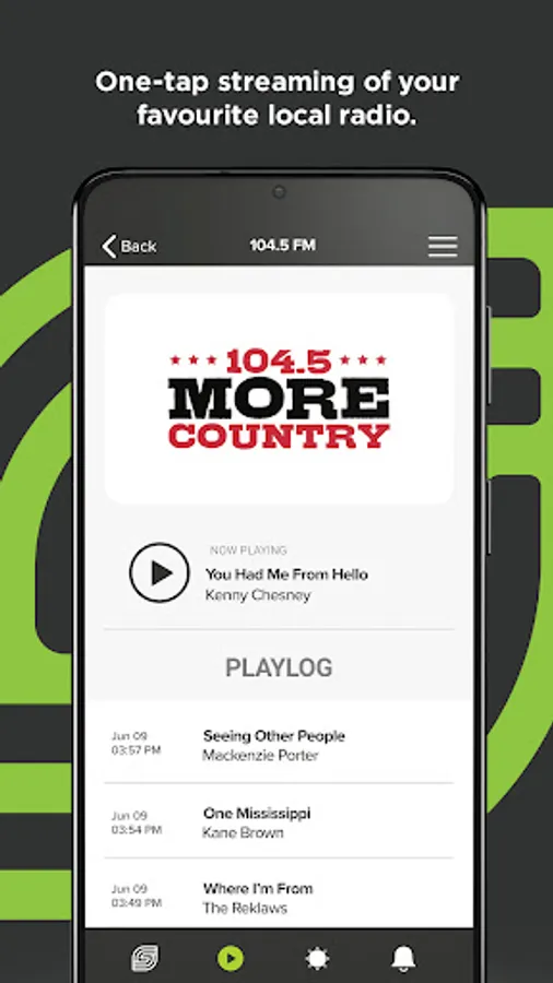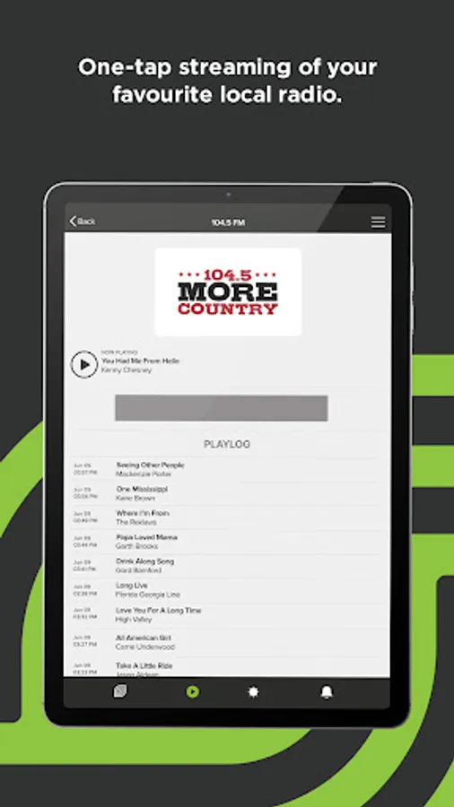 - Streaming: Listen to your favourite local radio station, 104.5 More Country, on-the-go, and look up recently played songs