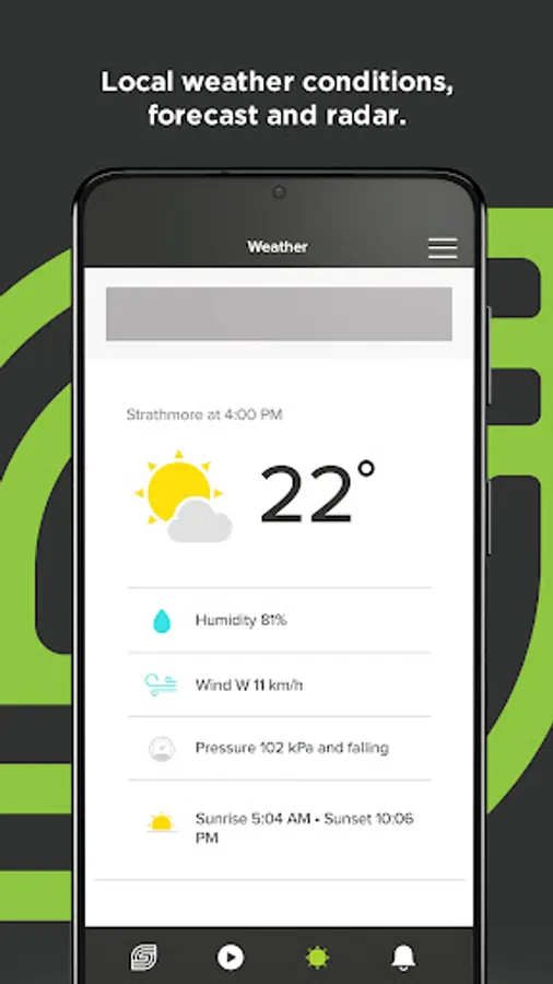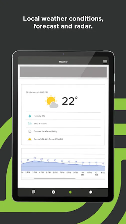 - Live local weather conditions, including hourly and 7-day forecasts and radar maps from Environment Canada