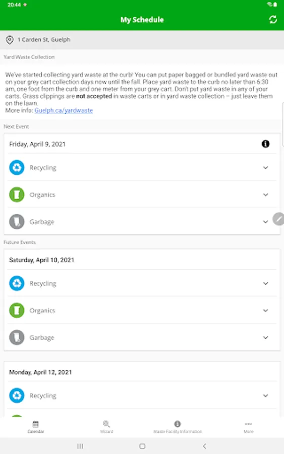 Garbage and recycling schedules and reminders for City of Guelph. View your garbage and recycling schedule and receive collection notifications all from within this app.