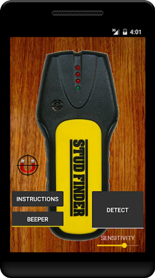 Studfinder operates in a similar manner to other hand-held stud detector tools: LED lights light up in sequence with proximity to stud as your device's magnetometer passes over the stud. However, because modern mobile devices do not have density sensors (which are used by real studfinder tools) Studfinder uses your compass (magnetometer) sensor to detect subtle changes in the background magnetic fields caused by conductive metal fasteners embedded in all studs. Because of the lack of a density sensor in mobile devices, studfinder apps cannot detect wood studs themselves, but rather, detect the metal fasteners embedded in them. Please keep this difference in mind when using Studfinder.
