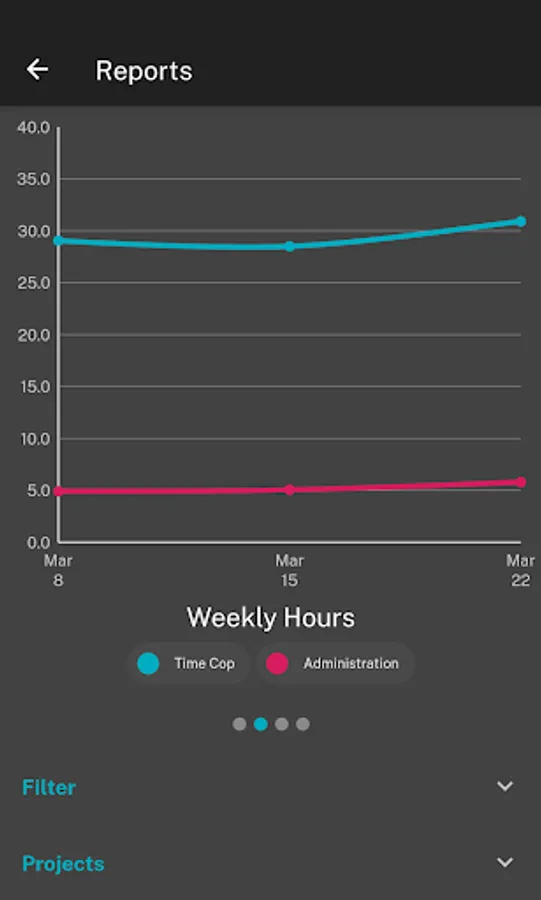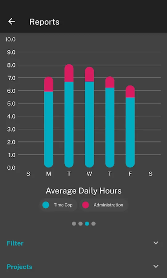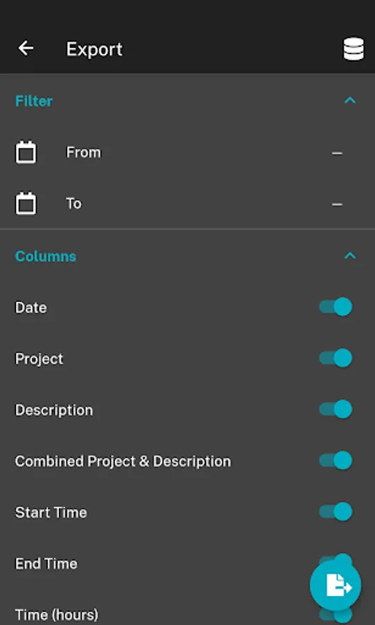 • Export data as a .csv file, filtered by timespans and projects
