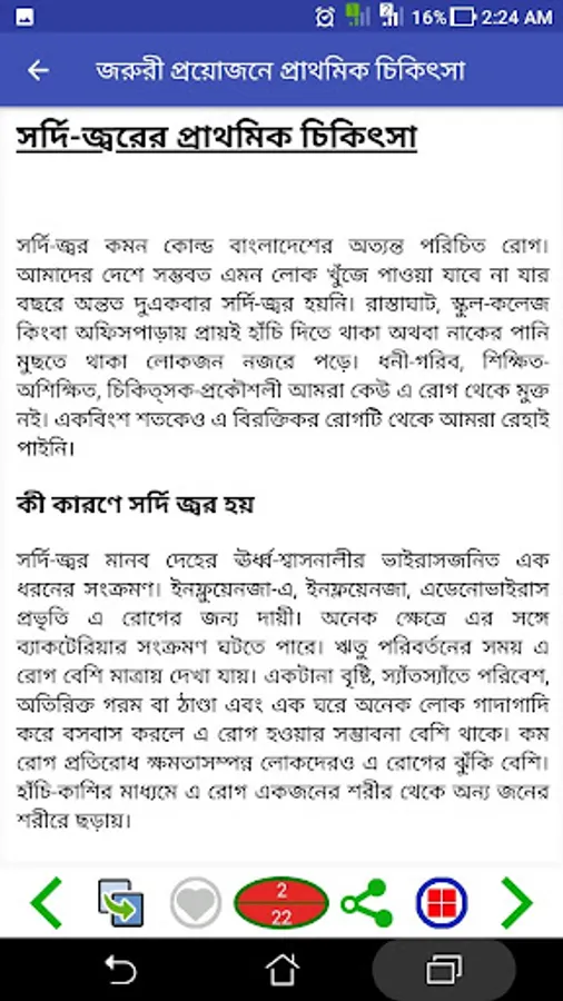 বাংলাভাষায় সহজবোধ্য চিকিৎসা বিষয়ক তেমন ই-বুক নেই। এসব বিবেচনা করে রচিত হয়েছে, “A Complete bangla Handbook for Self Diagnosis and Treatment” প্রাথমিক চিকিৎসা সহায়িকা’ নামক গ্রন্থটি। মোট কথা এই বইটা সবার সংরক্ষণে রাখা উচিত … কোন কোন সময় এই ই-বুক অনেক বড় বিপদের হাত থেকে রক্ষা করবে … তাছাড়া বইটি পরিবারে সংগ্রহ করে রাখার মতোই। ধন্যবাদ।