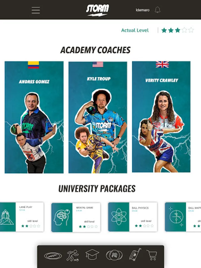 Welcome to the Storm Bowling App! Inside our latest creation from Storm, bowlers of all skill levels and abilities can engage in individual, virtual bowling lessons given by the Storm Pro Staff of your choice to bring your game to the next level! Our professionals from Storm Latino are also available to give lessons in Spanish. Bowlers can also explore Storm University, where our brightest minds at Storm HQ will teach you about modern bowling ball technology, mental game fundamentals, lane play strategies and more! Interested in matching up your game to our latest bowling ball releases? Look no further than the Storm MatchMaker portion of our app! We will help personalize your next Storm purchase based on your individual bowling needs. Finally, an arsenal tracker, that stores all the information about your Storm bowling ball arsenal! Select balls to put in your bag for tournaments, keep notes, enter in serial numbers and have your entire Storm arsenal at your fingertips! Users will also enjoy video tips from our national touring professionals and our ball designers to help you with everything bowling as you navigate through our new app!
