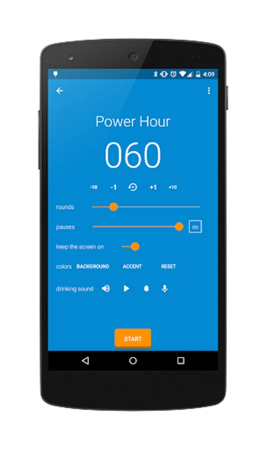 By default Power Hour will keep the devices screen on, however that is not for everyone so that too can be toggled on or off. However regardless whether or not the screen is on, the counter will continue to run and keep track, and when a round is up it will still sound the alarm!