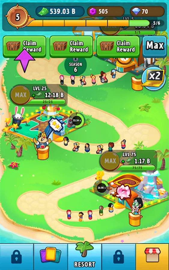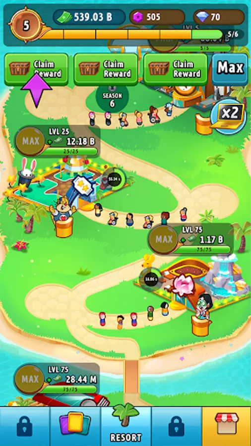 Start building your Resort and work your way towards becoming the number one vacation destination in the world! Start a new Resort every season to gain more bonuses and earn more money. Paradise begins with you!