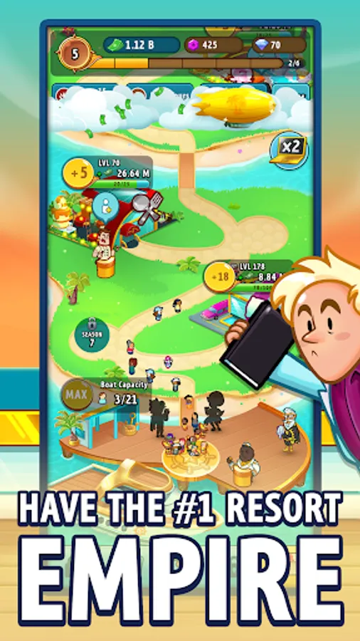 It’s as simple as one tap to start building your Resort Empire. Guests arrive in style, in a YACHT, then start tapping your way to the top!