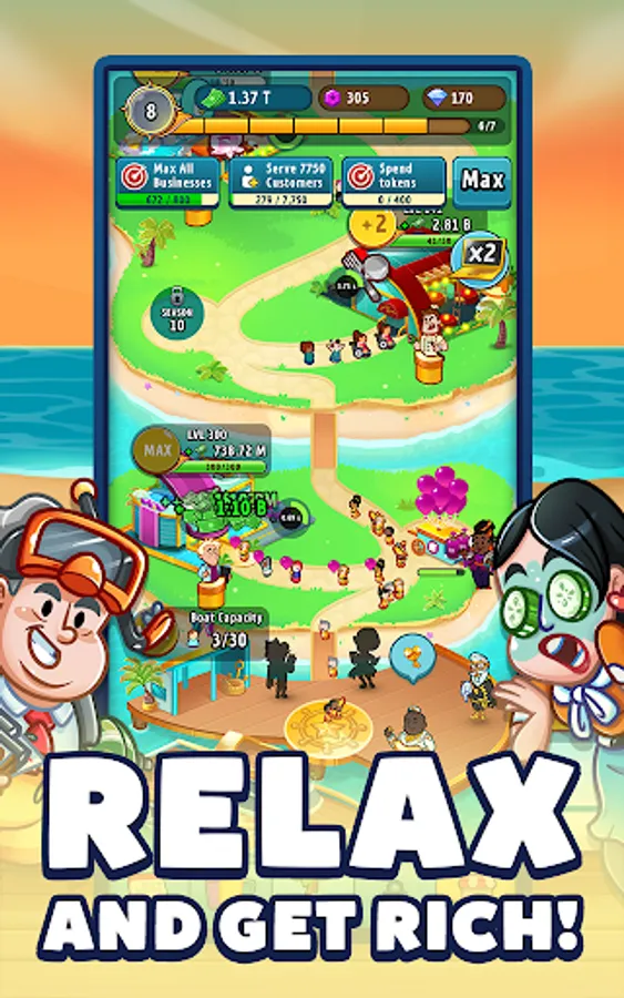 Ever dreamed of starting your own tropical paradise? Wanted to become a Resort Tycoon? Are you looking for a holiday? Then Vacation Tycoon is the perfect idle resort game for you!