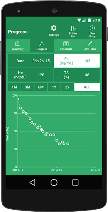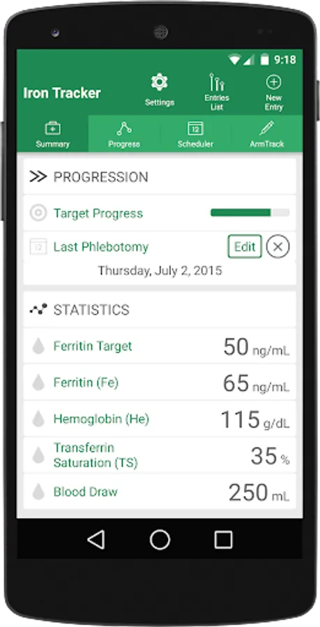 The Iron Tracker App gives patients a single place where treatment and life-long progress can be tracked, combining appointment management with tracking and visualization of bodily hemoglobin and ferritin values, providing a clear visualization of this data to better understand and share progress with friends, family and physicians. The app also tracks phlebotomy appointments and details, helping patients manage their lifestyle and wellness.