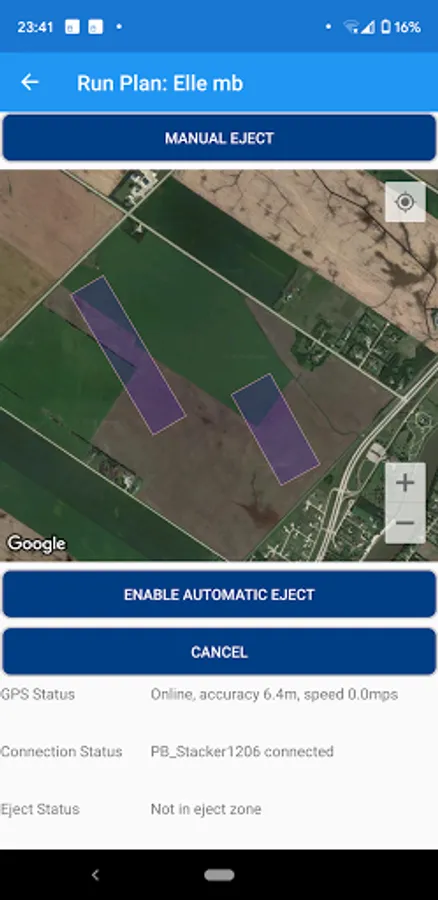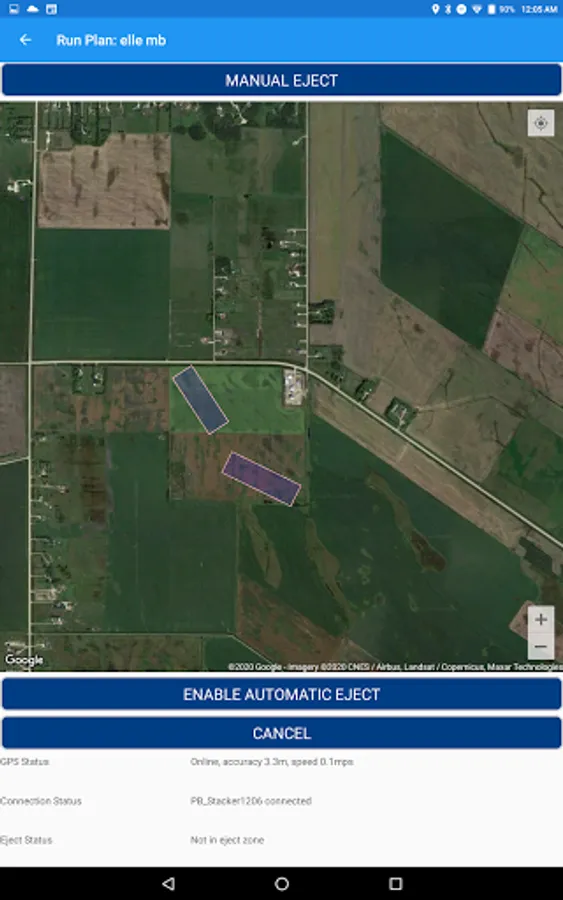 2. Eject Mode: Use your phone or tablet’s GPS and Bluetooth/Wifi to eject the bales automatically in the locations predetermined in the planning mode.