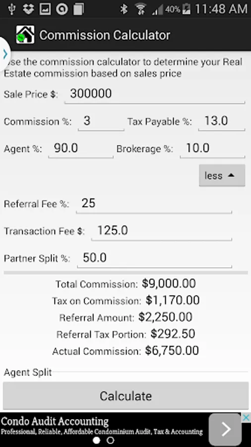 You'll use this tool over and over. Whether for yourself or to quickly calculate commission payable for your Sellers.