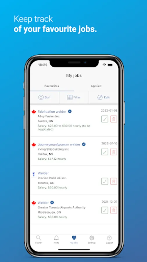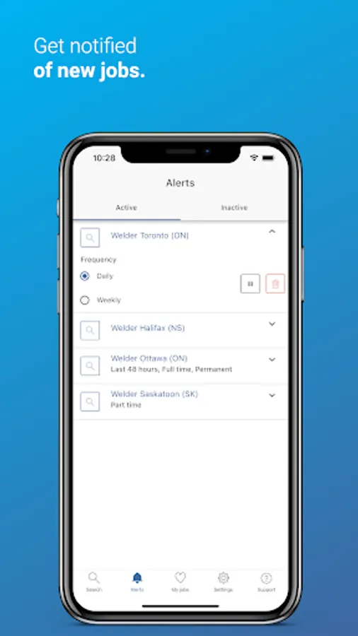 • Create alerts for your search criteria and receive notifications when matching job opportunities are advertised on Job Bank.