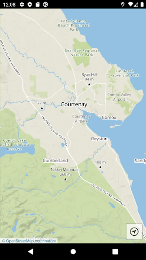A detailed trail map for the Comox Valley, including Cumberland, Courtenay and Comox. The map highlights non-motorised trails in red, great for hiking, running and biking.