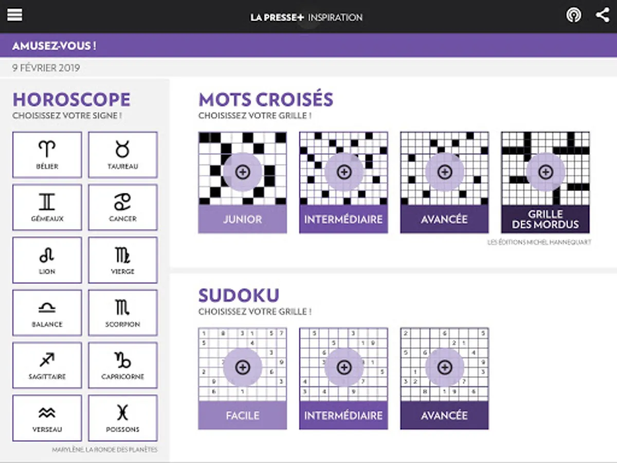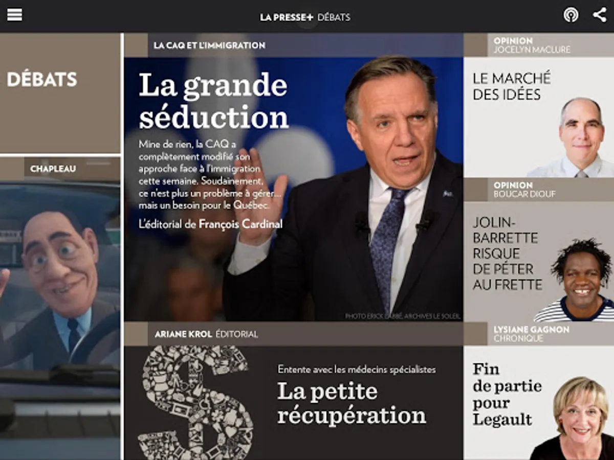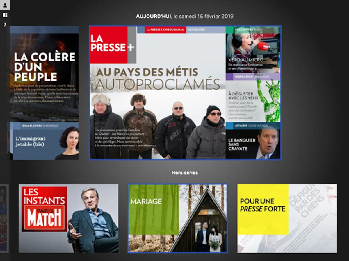 Get your daily news through different sections such as News, Business, International, Sports, Talk, Arts and Being and more. The largest independent French-language newsroom in North America offers in-depth and diverse news coverage. The digital edition for tablets of La Presse highlights the depth of the texts and offers a rich, immersive and engaging experience thanks to images, interactive graphics, videos and photo galleries.