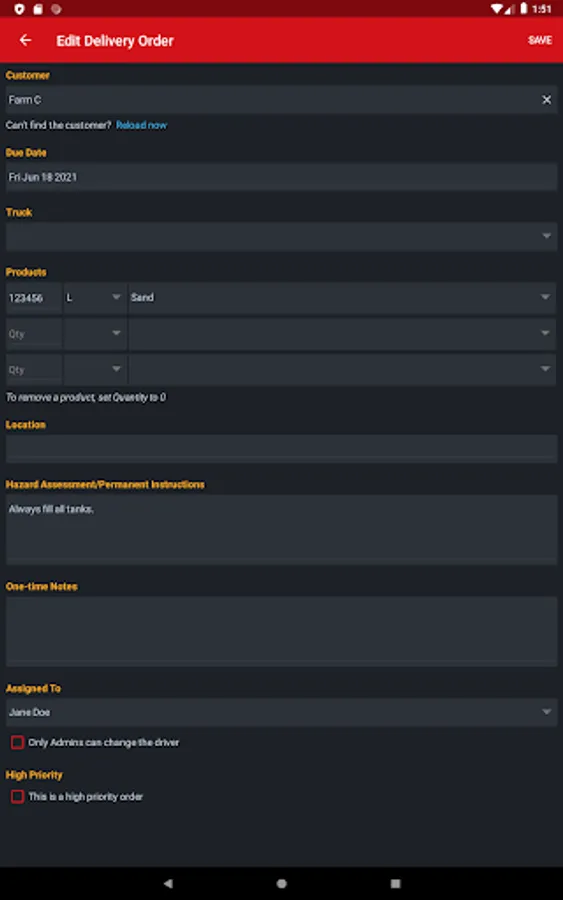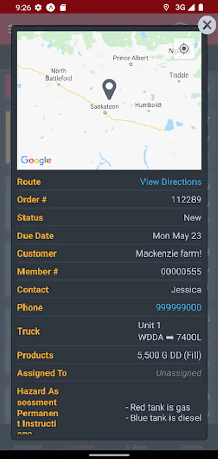 With Live Dispatch a driver can just log in and see which orders they have been assigned.