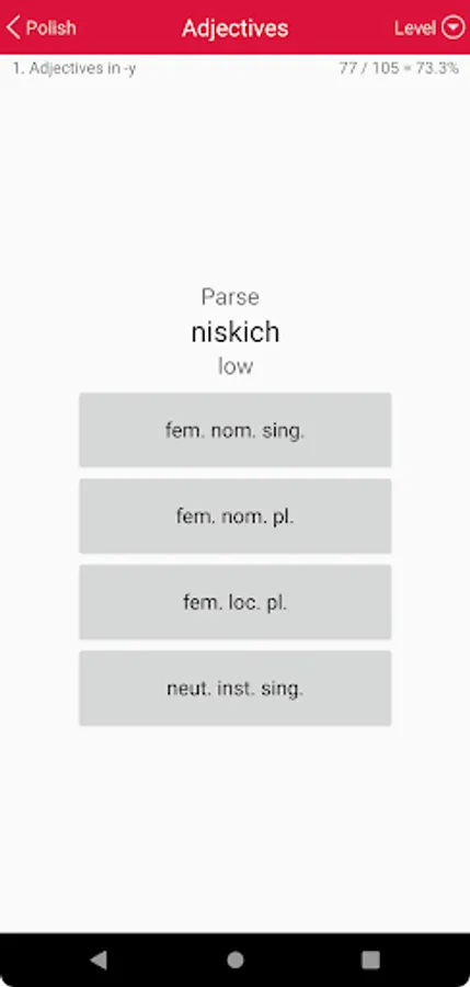 • Adjectives: Tests your ability to recognise and decline Polish adjectives.