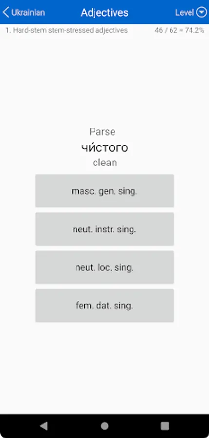 • Adjectives: Tests your ability to recognise and decline Ukrainian adjectives.