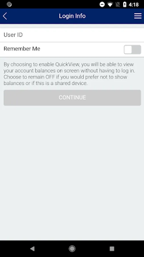 To take advantage of the full functionality of this app, you must already be registered and have logged in to Online Banking.