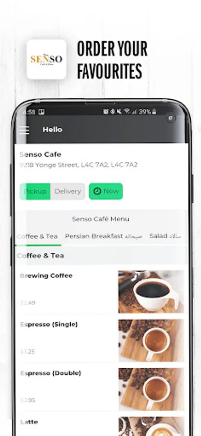 Download Senso Cafe & Bites Ordering App and plan your next meal by browsing through the Senso Cafe & Bites menu. Quickly order breakfast, healthy salads, hot and cold drinks, desserts, milkshakes, fresh juice, and much more using our app.