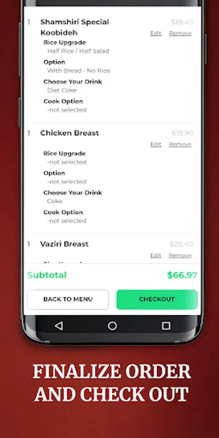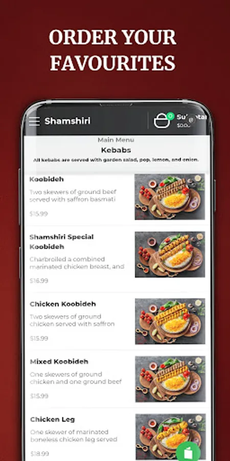 With Shamshiri Food Ordering App, you can easily satisfy your hunger wherever you are by ordering through the incredible app menu. It is super easy to order.