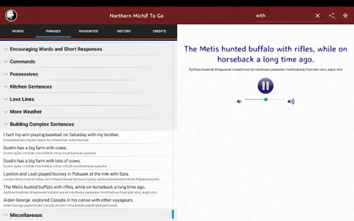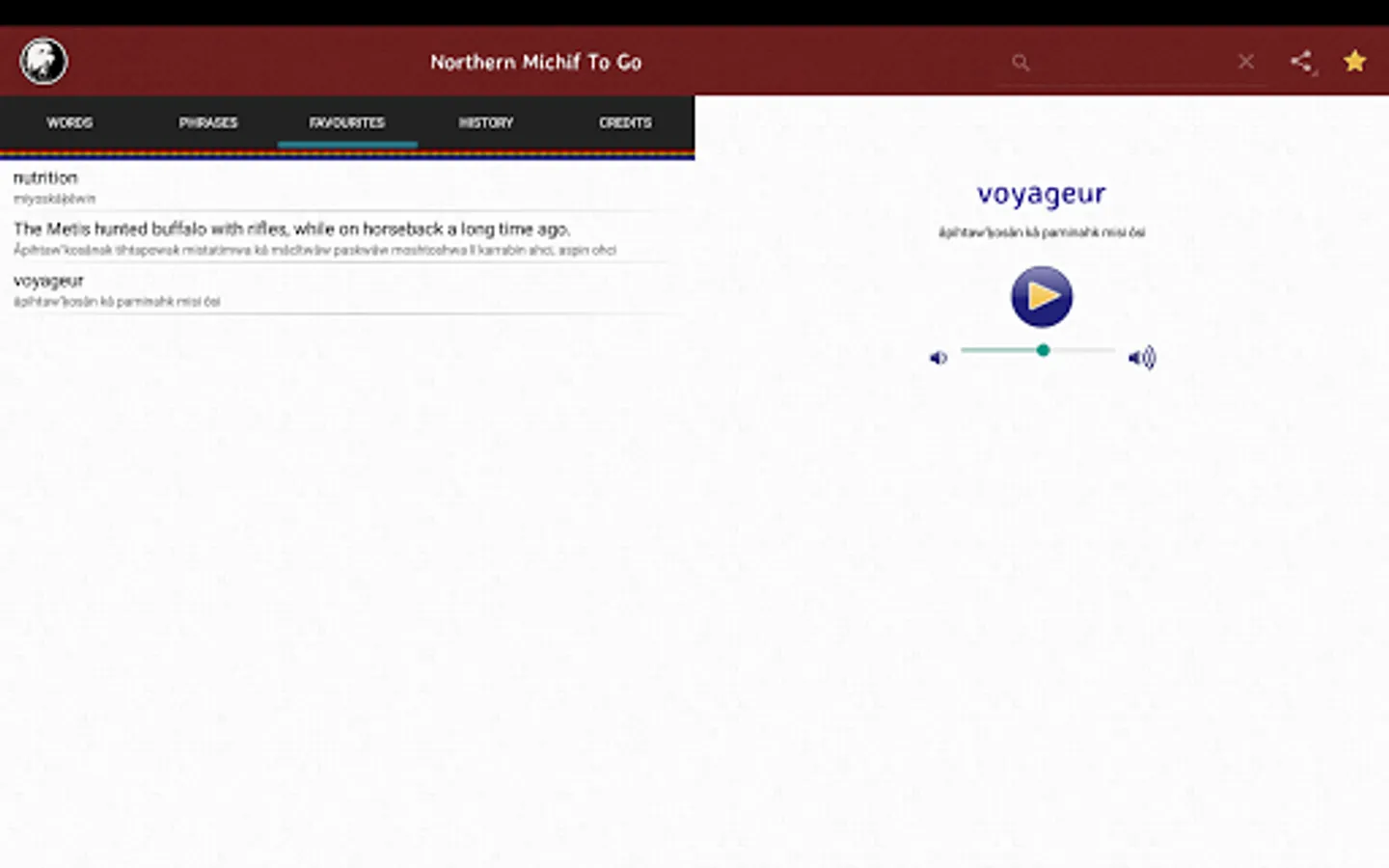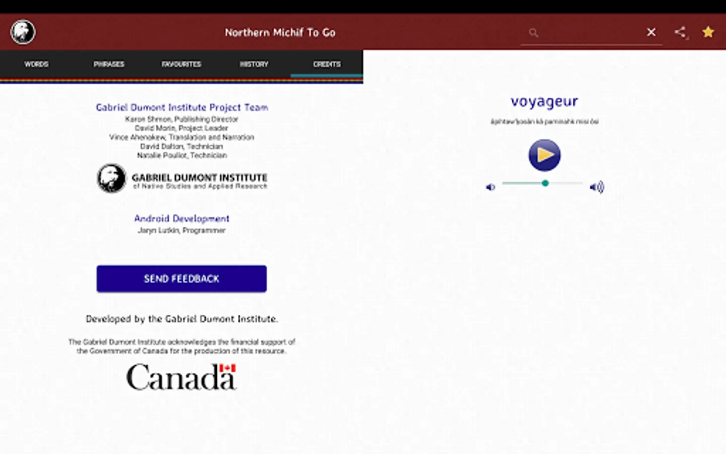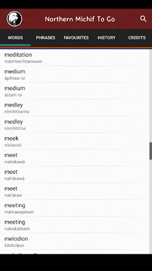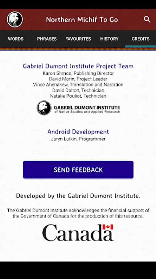 This dictionary app features over 18,000 translations and audio pronunciations by Northern Michif-language expert Vince Ahenakew. A search tool allows users to look up the English word to find the Northern Michif translations.