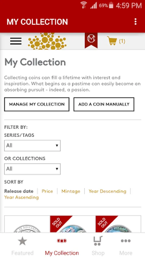 The Mint’s app offers a personalized experience for tracking and completing your collection. Keep an inventory of your coins, add previously purchased coins, receive notifications on Mint coin releases and respond more quickly to coins that are expected to sell-out.
