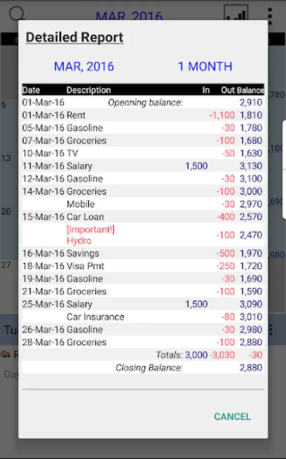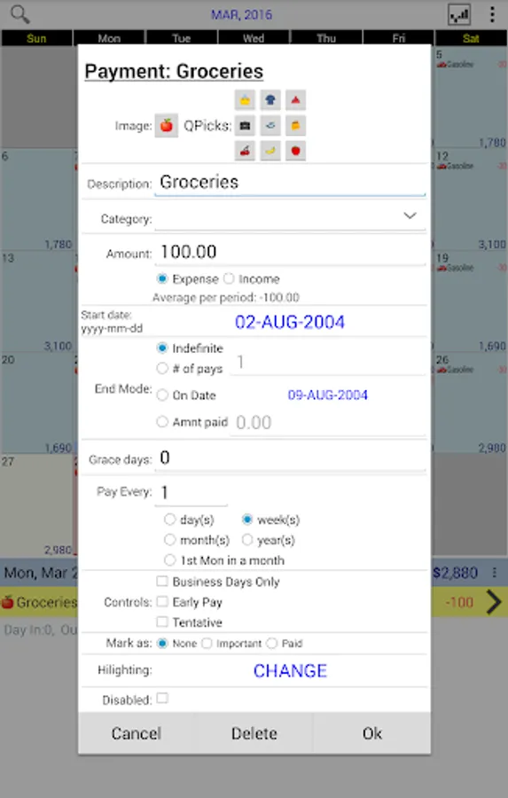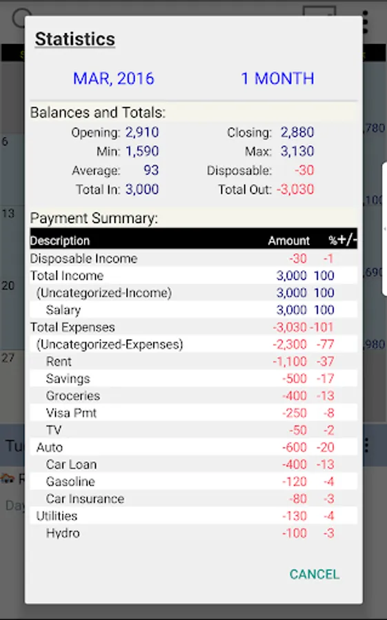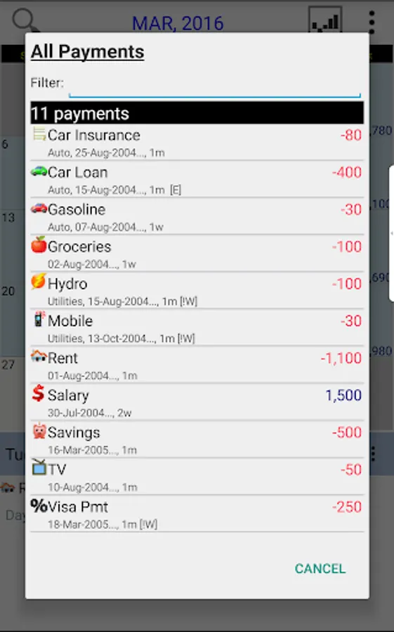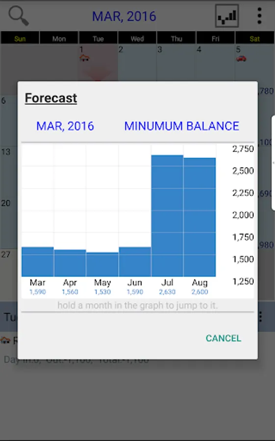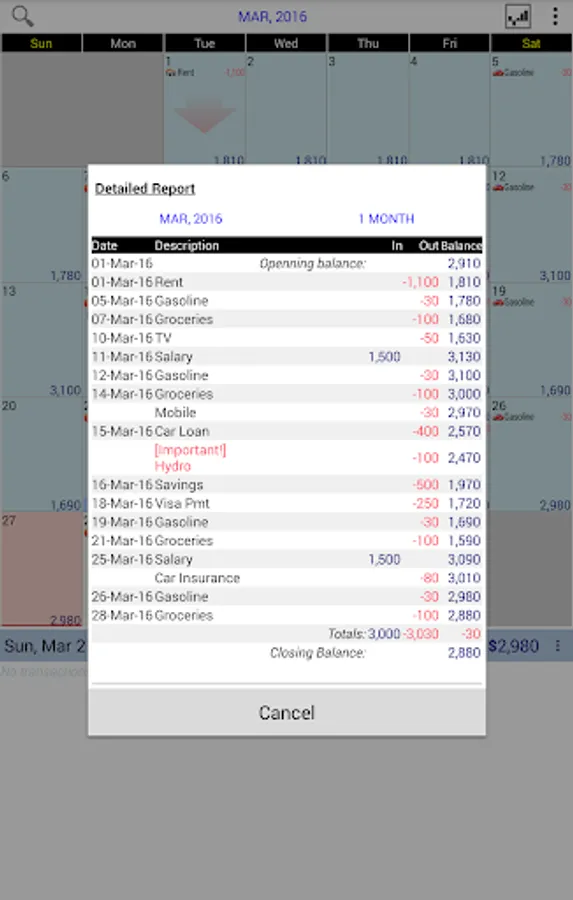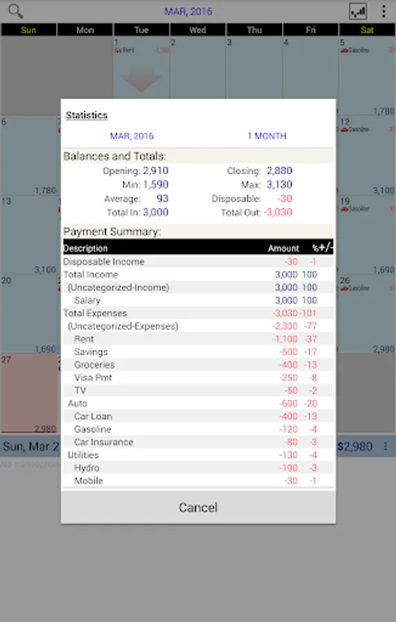 All transactions are shown on a calendar (compare to the complicated ledger system used by some budget applications). Each payment can have a unique icon. Move a transaction to a different day to fit your needs. See where you are going to spend money in the future. Get clear statistics and reports for one or more months. Adjust the budget balance to match your actual balance.