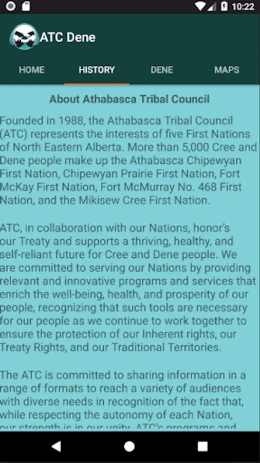The app’s vocabulary includes important nouns, as well as words for medicines, numbers, directions, weather, the calendar, and parts of the body. The app focuses on Denesųłįné dialects of northeastern Alberta. It also includes an overview of the Athabasca Tribal Council, as well as maps and satellite images showing the locations of its five member First Nations in North Eastern Alberta. The app is part of ATC’s commitment to teaching and preserving the indigenous languages of northeastern Alberta.