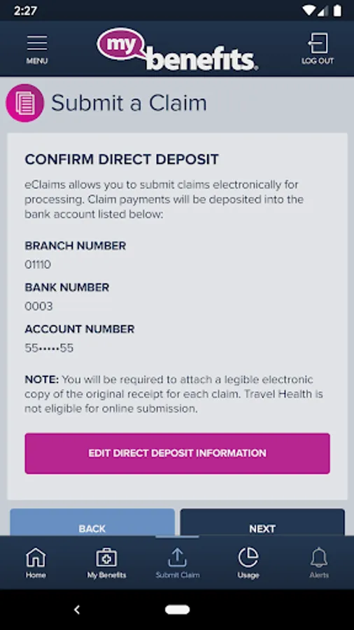 • Sign up to deposit claim payments directly into your bank account.